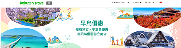 想搶下最優惠的日本住宿,決不能錯過樂天旅遊推出的限時「早鳥特別優惠券」: 請點我